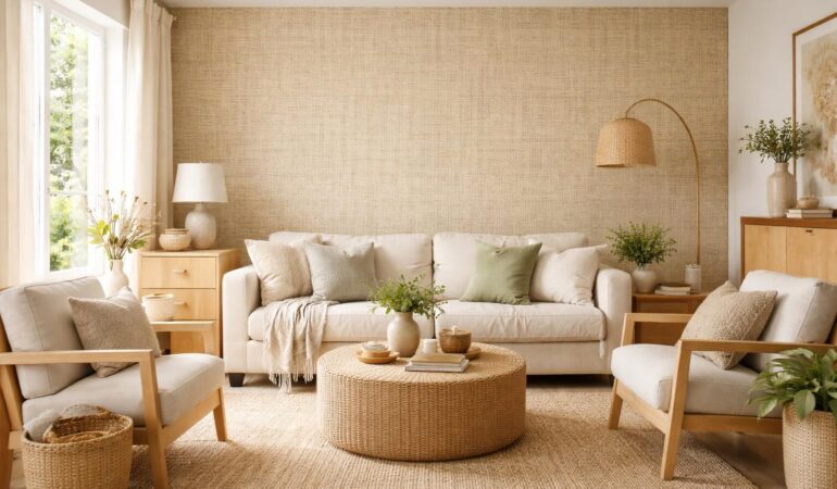 Les textures naturelles occupent une place centrale dans la tendance des papiers peints en 2026. Les modèles en fibres végétales, tels que le lin, la paille et le rotin, sont particulièrement en vogue. Ces matériaux apportent une dimension organique et chaleureuse à un intérieur, faisant écho à une esthétique minimaliste. Leur aspect brut leur permet de s’intégrer harmonieusement dans divers styles décoratifs, allant du rustique chic au moderne.